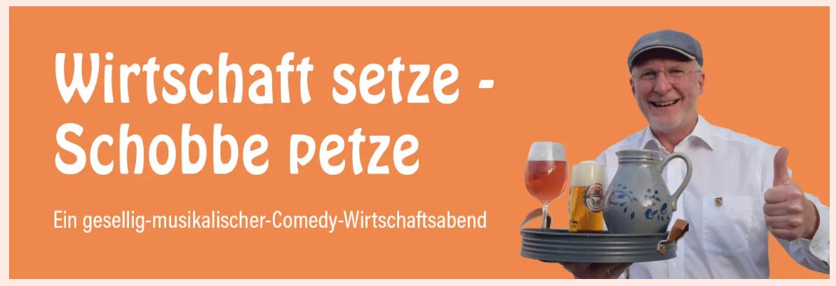 Genießen Sie unterhaltsame Geschichten und Anekdoten aus den Seligenstädter Wirtschaften. Es geht dabei um das Essen und Trinken und um die Geselligkeit in den heimischen Traditonslokalen. Wenn die Germania-Sänger ihre Wirtschaftslieder am Stammtisch zum Besten geben, dürfen Sie auch gerne mitsingen. Dazu können Sie sich an der Theke ein frisch gezapftes Hopfenkaltgetränk Seligenstädter Braukunst, ein „Stöffche“ im Gerippten, einen bekömmlichen Rebensaft oder auch einen Gänsewein einschenken lassen.
